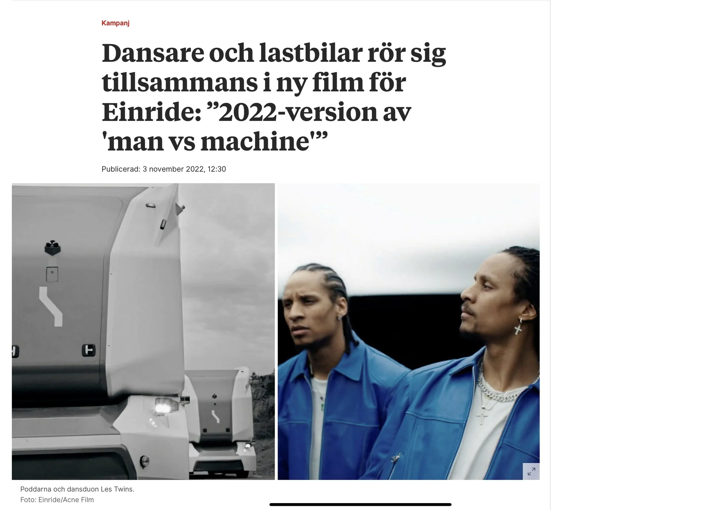 Einride, together with Les Twins, aired the Intelligent Movement campaign as part a broader global brand and product launch initiative.
